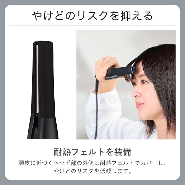 頭皮に近づくヘッド部の外側は耐熱フェルトでカバーし、やけどのリスクを低減します。