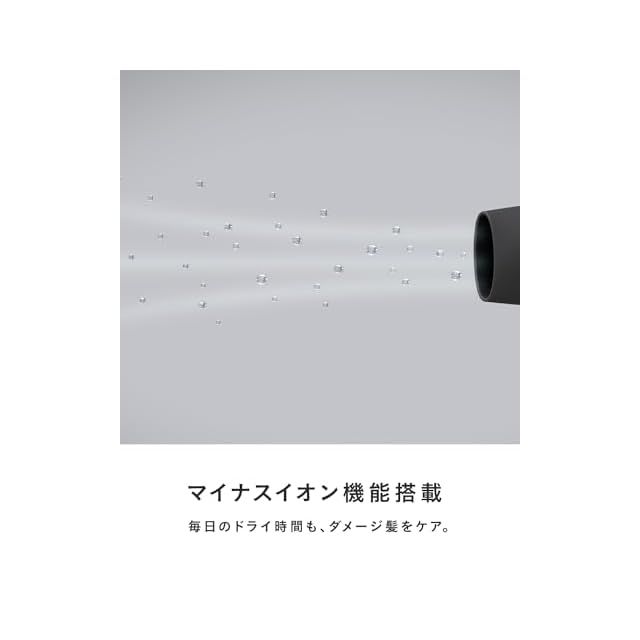 【髪にやさしいマイナスイオン機能】髪にやさしいマイナスイオンを発生。髪をいたわりながら乾かします。