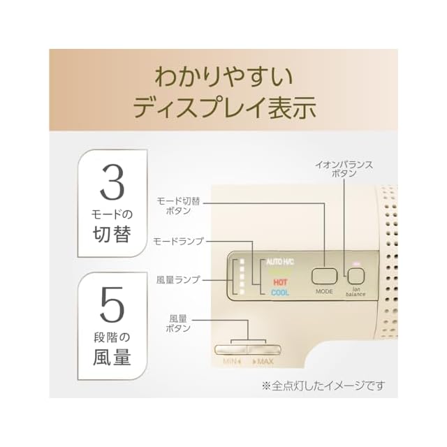 商品名:コイズミ ヘアドライヤー イオンバランス ハイスピード サロンセンス ブラシレスDCモーター 温冷自動切替 5段階風量調節 スカルプ機能 コンパクト 折りたたみ式 アイボリー KHD-9970/C