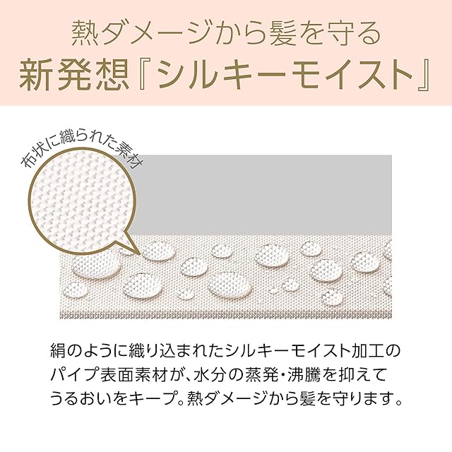 水分の蒸発を抑え、髪への熱ダメージとうるおいを守るシルキーモイスト加工プレート。