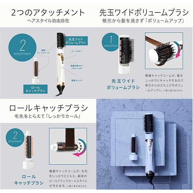 2つのアタッチメントでボリュームヘアもカールアレンジも