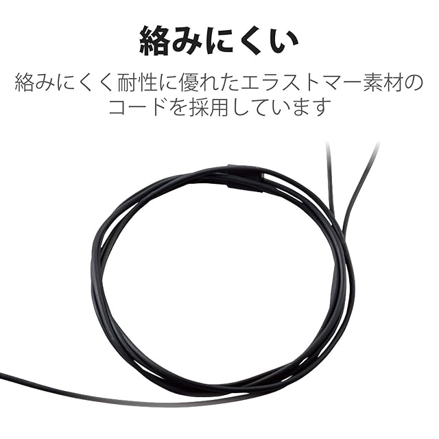 絡みにくく耐性に優れたエラストマー素材のコードを採用しています。また、芯線にナイロン線を入れることで強度を上げています。