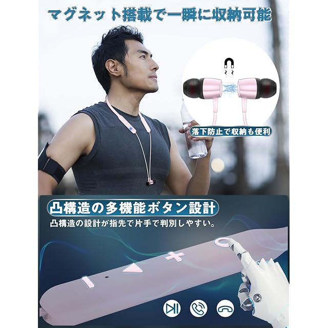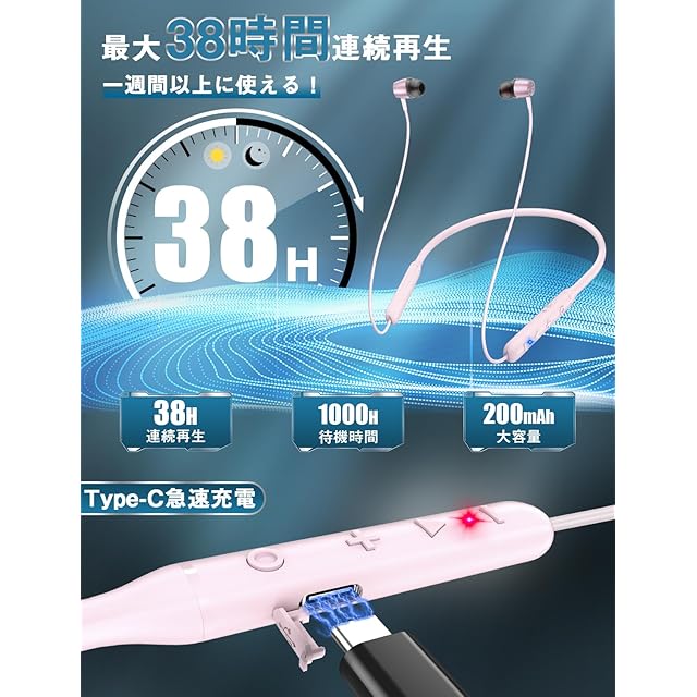 商品名:【業界トップ Bluetooth5.3+38時間連続再生】イヤホン ネックバンド型 ワイヤレス CVC8.0ノイズキャンセリング スポーツ マルチポイント対応 Type-C急速充電 Hi-Fi音質 マグネット搭載 自動ペアリング ハンズフリー通話 軽量 ランニング 在宅勤務/テレワーク/skype/ビジネス/LINEチャット/zoom会議(ピンク)