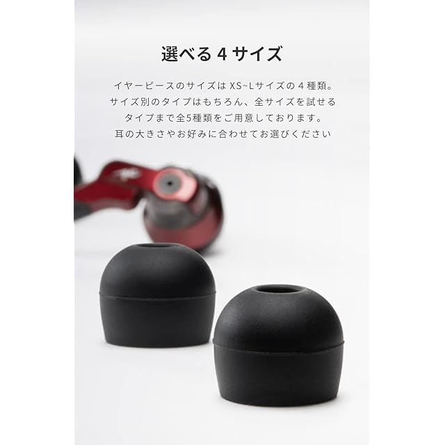 【4種類の異なるサイズ】イヤホンは、イヤーピースと肌の隙間を小さくすることで、再生する音声の低音を余すことなく送り出すことができます。耳穴の大きさや装着感に合わせて適切なサイズをお選びください。
