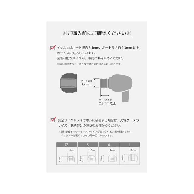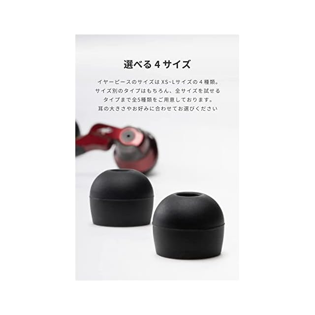 【4種類の異なるサイズ】イヤホンは、イヤーピースと肌の隙間を小さくすることで、再生する音声の低音を余すことなく送り出すことができます。耳穴の大きさや装着感に合わせて適切なサイズをお選びください。