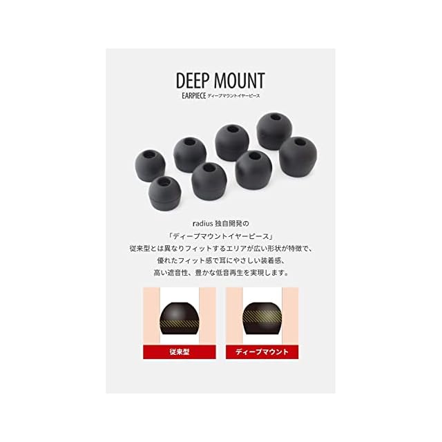 商品名:ラディウス radius ディープマウントイヤーピース : 高いフィット感 重低音の迫力増強 高遮音性 イヤーピース イヤピース イヤーチップ イヤホンピース (クリア/Lサイズ ・3セット) HP-DME01CL