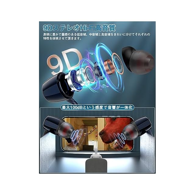 【Hi-Fi高音質・9Dステレオサウンド・CVC 8.0ノイズキャンセリング】複合鼓膜ダイナミックドライバーを備えており、AACとSBCコーデックも対応するのでーデックとはオーディオ機器からイヤホンへ音楽を伝送して、音声データを圧縮する方式で高品質なコーデックになって、コンサートのように、臨場感あふれる9Dステレオで、低遅延・高音質を実現できます。また、CVC 8.0ノイズキャンセリング技術により、よい遮音性で周りの雑音を適度にカットし、繁華街や駅構内、飛行機や電車内等うるさい場所でも、周囲の環境音に左右されることなくクリアな音楽視聴や通話をサポートしてくれます。イヤホンには指向性のマイクが内蔵されていて、周囲のノイズをカットしてくれ、ハンズフリー、クリアな通話にも対応しています。