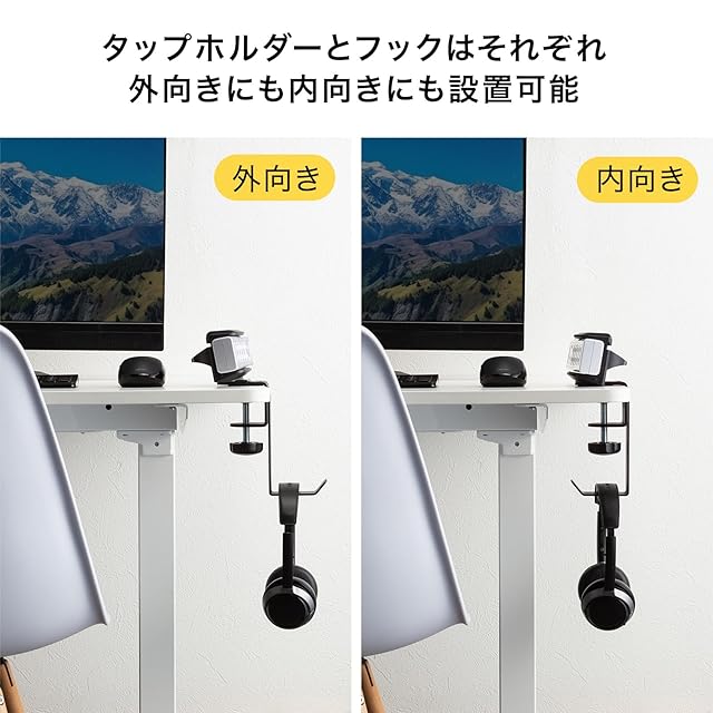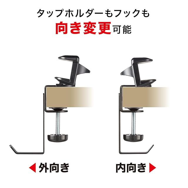 タップホルダーとフックはそれぞれ外向きにも内向きにも設置できます。