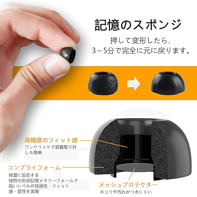 【快適な着用感】 体熱により低反発素材が柔らかく変化し、あなたの耳に優しくフィットします。快適なリスニング体験を作り出します。