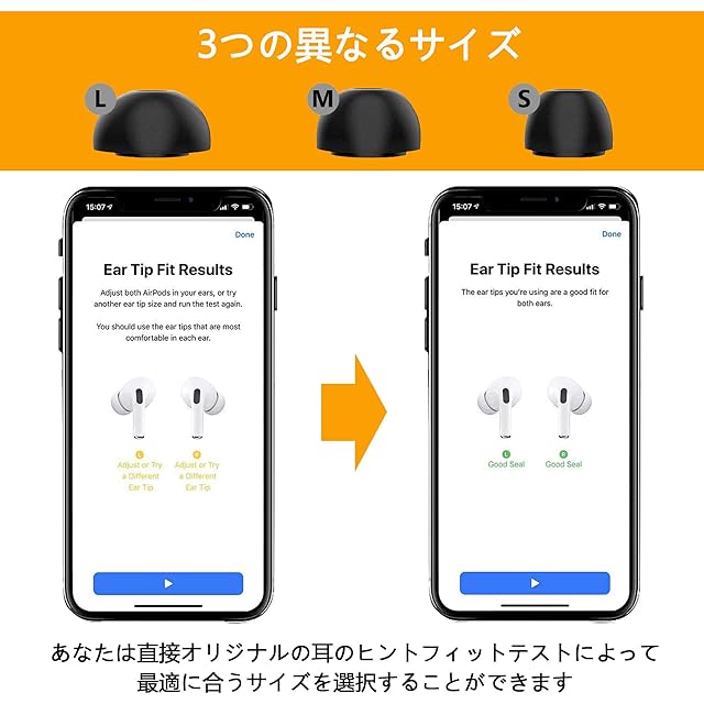 【互換性】AirPods Pro に適合するように設計されています。AirPodsやEarPodsには適合しません。S/M/Lサイズ、合計3ペア付属してす。