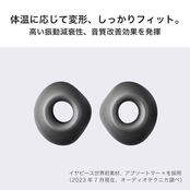 人肌で柔らかくなじむ「アブソートマー」素材をイヤピースとして世界初採用。あなたの体温に応じて、イヤピースが耳穴の形状に合わせて変形します。余計な反発力を低減し、圧迫感が少なく装着できるため、音楽・動画鑑賞やテレワーク、通勤時間など長時間使用による装着の疲れや痛みを限りなく抑えます。