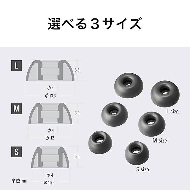 商品名:オーディオテクニカ AT-ER500 M イヤーピース 完全ワイヤレスイヤホン用 AT-ER500 Mサイズ/高遮音性/音質改善/高フィット/アブソートマー素材/国内正規品/グレー