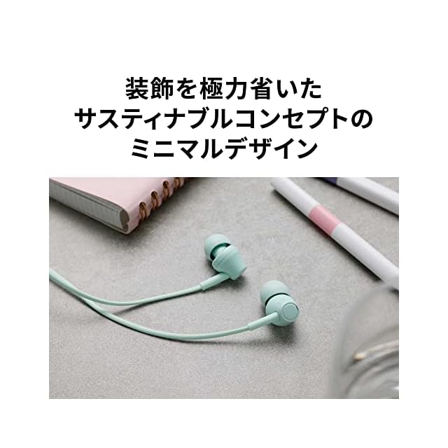 再生プラスチックを使用したイヤホンイヤホン本体に、再生プラスチックを50%配合。環境に配慮したPCR(Post-ConsumerResin)プラスチック*を原材料としています。* PCR プラスチックは、私たちが消費したペットボトルやその他のプラスチックな どをリサイクルした材料です。地域のリサイクルプログラムなどを通じて入手しやす く、より少ないエネルギーと化石燃料で再利用が可能なため、埋め立て地に送られ る廃棄物の量を減らすことができます。