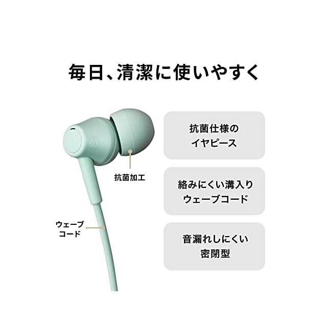コードが絡まりにくく、使いやすい。人と地球にやさしい、かんたんイヤホン。