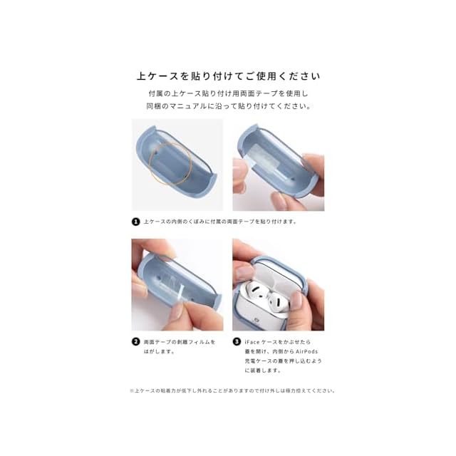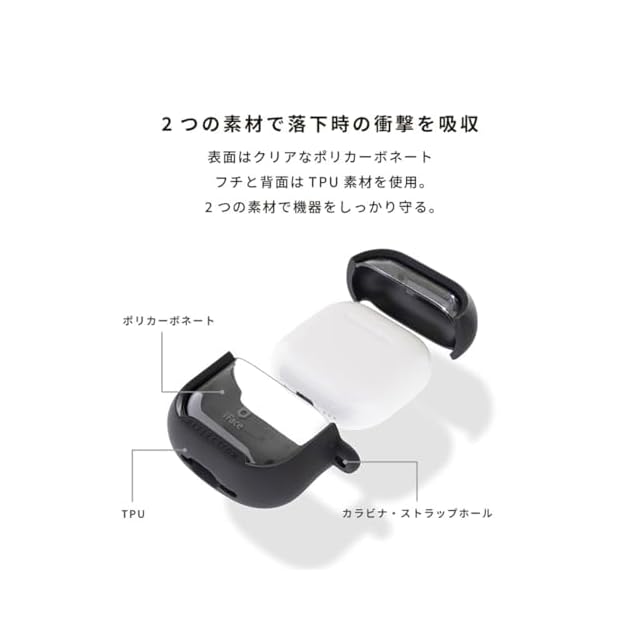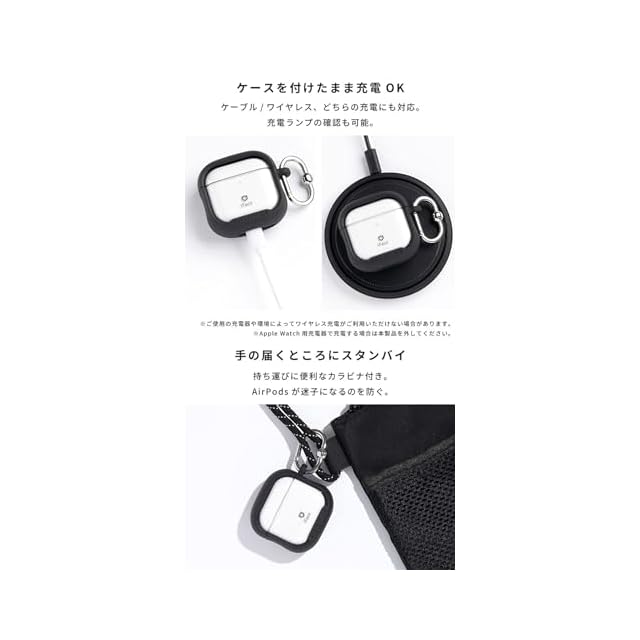 iFace Reflectionをギュッと小さくしたようなAirPodsケース<br><br>人気シリーズのiFace ReflectionからAirPods(第4世代)用ケースが登場しました。<br>Reflectionスマホケースをギュッと小さくしたようなデザイン。<br>カラフルなふちとクリアの表面で、ケースを着けた状態でもAirPods本体が見えるのがおしゃれ。<br>Reflectionスマホケースやタブレットケース、Hang andショルダーストラップとカラーコーデを楽しもう。<br><br>・新しい「シグネチャーカラビナL」がポイント<br>・カラビナでカバンやベルトループなどに装着可能<br>・ポリカーボネートとTPU、2つの素材でしっかり守る<br>・クリア表面にシールを貼ってアレンジOK<br>・ケースをつけたままワイヤレス充電可能<br>・上ケース貼り付け用両面テープ付属。<br>※同梱されているマニュアルに沿って貼り付けてください。<br><br><br>●本製品ご使用における人体・デジタルデバイス本体を含む持ち物・データなどの損傷、損失、紛失に対し、弊社は一切の責任を負いかねます。<br>●使用前に記載事項を必ずご確認ください。<br><破損や思わぬ怪我の原因となりますので以下の事項は絶対におやめください><br>・本製品に過剰な力を加えること<br>・本製品に破損、変形等が生じた場合の使用<br>・火気、高温、多湿な場所での保管、長時間の放置<br>・本来の用途以外での使用<br>・お客様による本製品の加工、改造<br>●本製品およびパッケージは改良のため予告なく仕様を変更する場合があります。<br>●当社の許諾なしに無断で転載、複製することは固く禁じます。<br>●記載されている製品名・会社名などは各社の商標または登録商標です。<br>●デジタルデバイス本体は付属しておりません。<br>●小さな部品がありますので誤飲にご注意ください。<br>●デジタルデバイス本体やケースに発熱などの異常がある場合は本製品を外してください。<br>●ご使用の機種、充電器や環境によってワイヤレス充電がご利用いただけない場合があります。<br>●Apple Watch用充電器で充電する場合は本製品を外してください。<br>●ご利用状況・環境、溶剤の使用などにより変色や変質が起きることがあります。<br>●上ケースの粘着力が低下し外れることがありますので、付け外しは極力控えてください。<br>●衣服によっては引っかかったり、破れたりするおそれがあります。<br>●上ケース内側に両面テープを貼り付けてからご使用ください。<br><br>商品仕様<br>サイズ:約縦5.5×横6.2×厚2.4cm、重量:約25g<br>カラビナ:約縦3.6×横2.4cm<br>主素材:ポリカーボネート、TPU、亜鉛合金<br>ワイヤレス充電:可(ご使用の機種、充電器や環境によってワイヤレス充電がご利用いただけない場合があります。)<br>付属品:カラビナ、上ケース貼り付け用両面テープ<br>