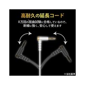 断線に強く、8万回の屈曲試験※に合格した高耐久モデルのヘッドホン・イヤホン用延長コードです。※当社基準
