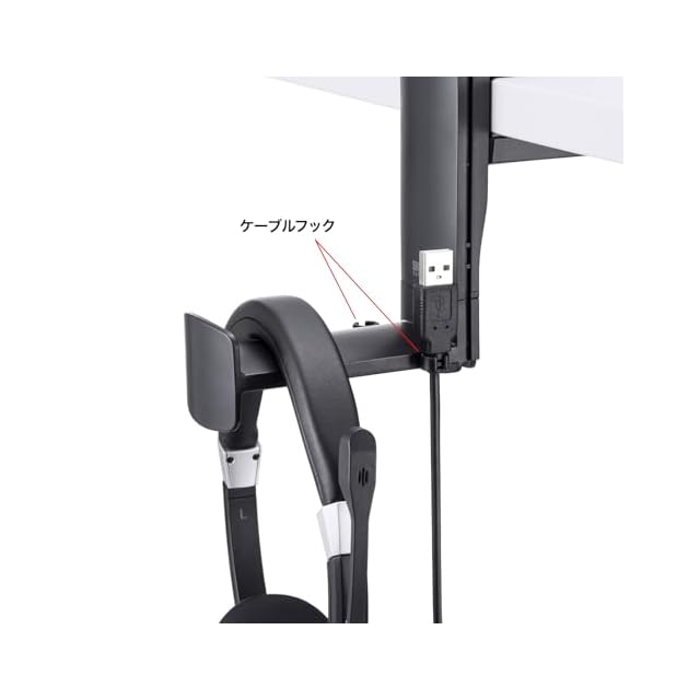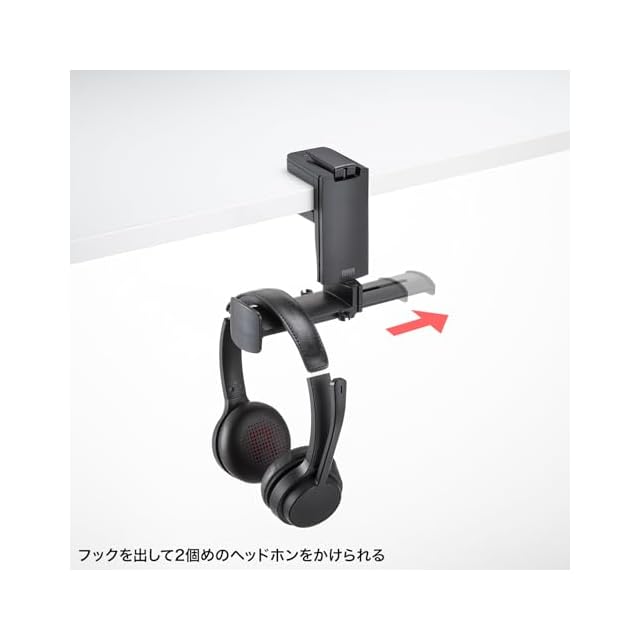 フックを引き出せばヘッドホン2台に対応します。≪ご注意≫※総耐荷重以上のものを置かないでください。破損したりクランプが外れるおそれがあります。