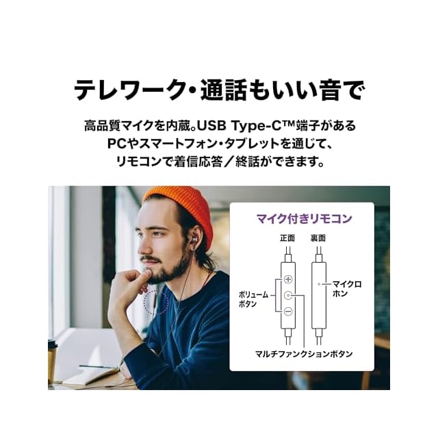 商品名:オーディオテクニカ ATH-CKD3C BK マイク付きイヤホン USB Type-C 有線 1.2m カナル型 ブラック 小型