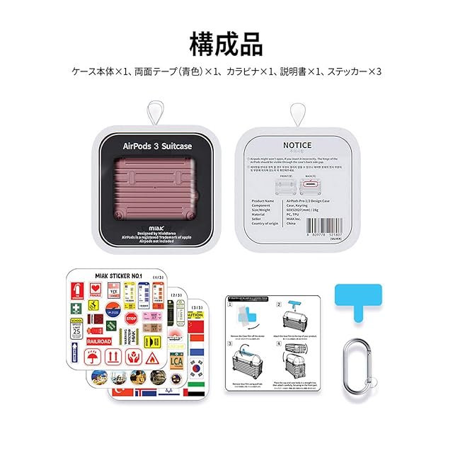 商品名:miak AirPods 第3世代 キャリーケース ケースカバー [ スーツケース ハードケース キャリーバッグ ポリカーボネート TPU カラビナ付き ワイヤレス充電 Qi 対応 ステッカー カスタマイズ ] 【 国内正規品 】