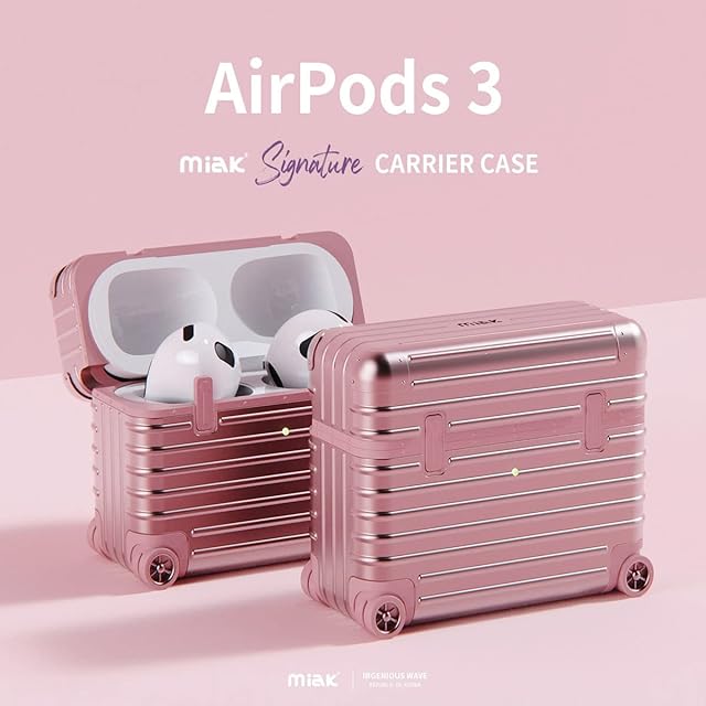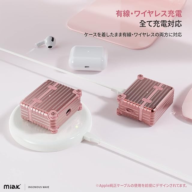 miak AirPods 第3世代 キャリーケース ケースカバー [ スーツケース ハードケース キャリーバッグ ポリカーボネート TPU カラビナ付き ワイヤレス充電 Qi 対応 ステッカー カスタマイズ ] 【 国内正規品 】 | LIS MART