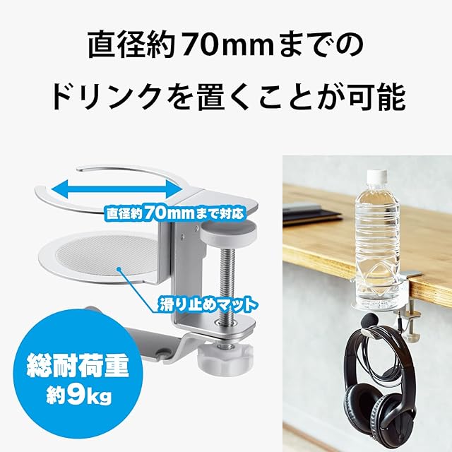 ヘッドホンとドリンクをまとめて収納できる、ドリンクホルダー付きのヘッドホンスタンドです。