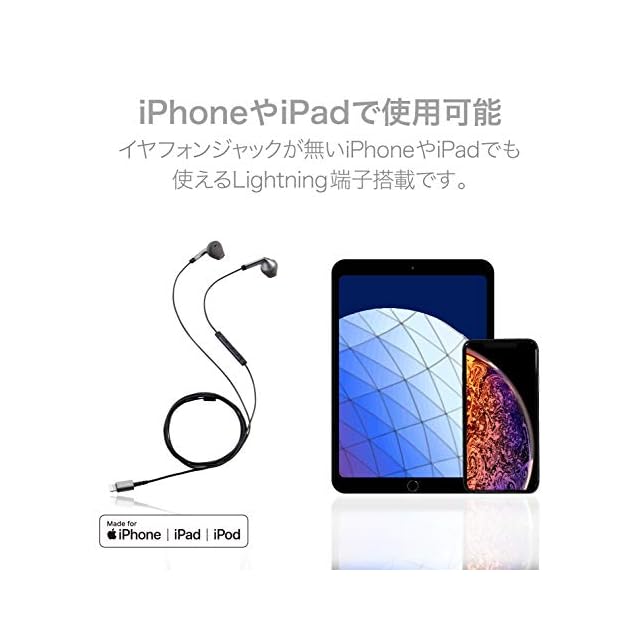Appleの正規ライセンス「Made for iPhone/iPad/iPod」を取得し、Lightningコネクタに直接接続して快適なリスニングを楽しめるステレオヘッドホンマイクです。