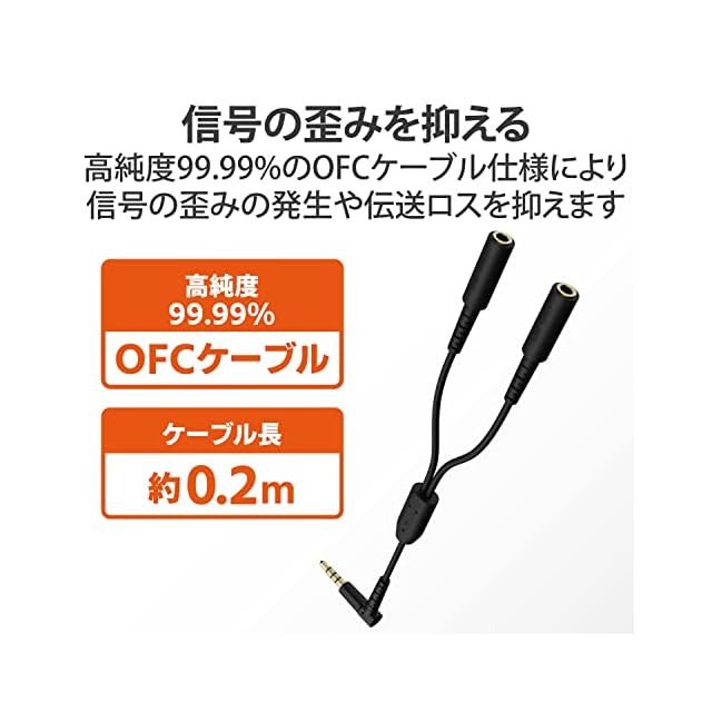 商品名:エレコム イヤホンスプリッター 4極 2分配 オーディオ分配ケーブル イヤホン 分配 分岐 ブラック EHP-35W02BK