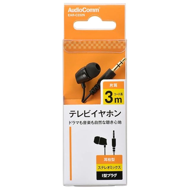 商品名:オーム電機 AudioComm 片耳テレビイヤホン ステレオミックス 耳栓型 3m EAR-C232N 03-0447 OHM