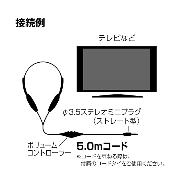 テレビ鑑賞に最適な5.0mコード(コードをまとめるコードタイ付属)
