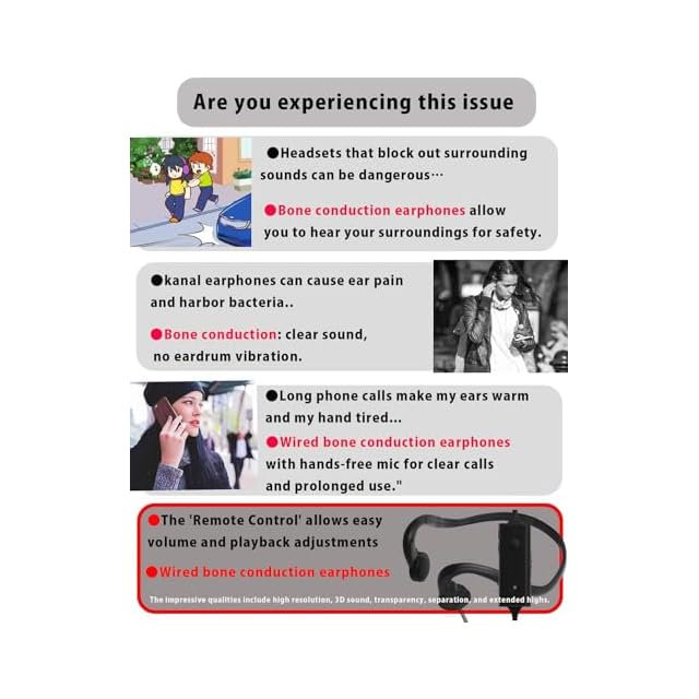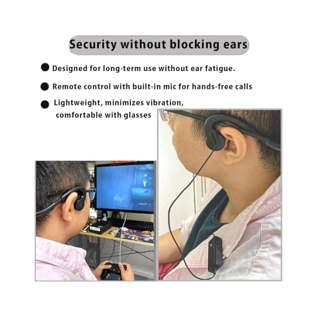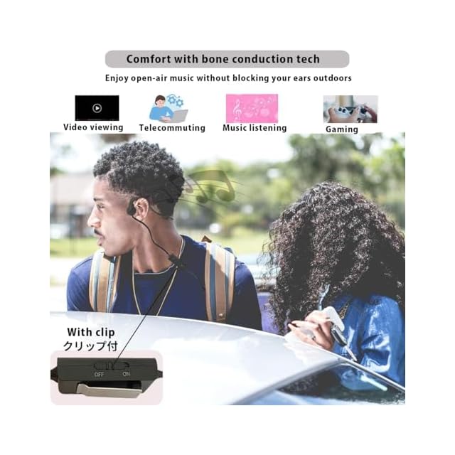 【有線骨伝導イヤホンの特徴と機能】耳をふさがずに使用できるのが魅力のアイテムです。 1:テレワークやウオーキング、ゲーム、動画、音楽鑑賞、などに最適 2:耳をふさがずに聞けるので、周囲の音も聞きながら聞けること。周りの音が騒がしくても、骨を通して音がきちんと聞こえます。そして、鼓膜をふるわせずに聞けるので、長時間使用しても耳が疲れにくく、耳をふさがないので圧迫感を感じません。本代約24g(リモコン除く)
