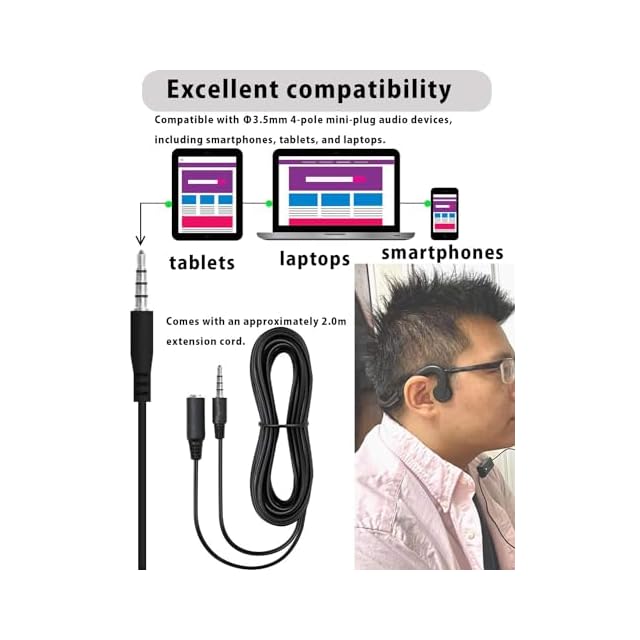 【リモコンの使用】音楽の再生・停止・音量調整・選曲や骨伝導振動のON/OFFが可能なりリモコンです。便利!非常にクリアに聞こえて。 1:マイク付き ハンズフリー通話 アンプ搭載 . 2.リモコン内蔵充電電池で振動する骨伝導ヘッドホン。 ●内蔵充電池が切れると骨伝導でできません ●microUSB充電ポートカバー外して、完全充電約2時間です。microUSBケーブル別売り。お手持ちのMicro USB対応のAC充電器等に接続のうえ充電してください。 ※AC充電器は付属しておりません。 3:リモコン後ろにクリップ付き、服に取り付けできる。イヤホンが落ちやすい、操作・調整しやすいです。 4:スライド式のアジャスタ調整機能付き(片側25mm) 5:スマホに対応したリモコン マイク付きがコード部にあり、クリアな音質で会話することもできます。3.5mmオーディオデバイスに対応しているので、スマートフォンはもちろん、タブレット、ノートパソコンなどさまざまな機器と接続することができる骨伝導イヤホンです。 6:約2.0mイヤホン延長ケーブル付き。高齢者にテレビなどに最適