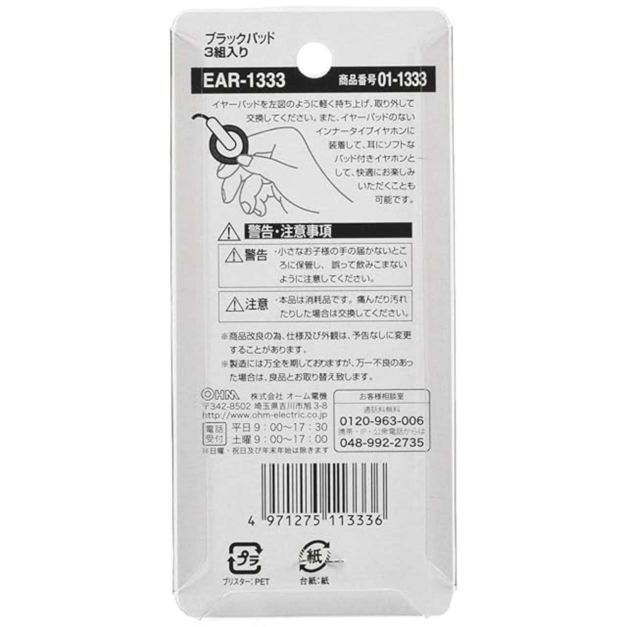 商品名:オーム(OHM) オーム電機 イヤーパッド ブラック EAR-1333 (3組入り)