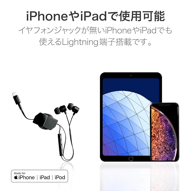 Appleの正規ライセンス「Made for iPhone/iPad/iPod」を取得し、Lightningコネクタに直接接続して快適なリスニングを楽しめるマイク付きステレオヘッドホンです。