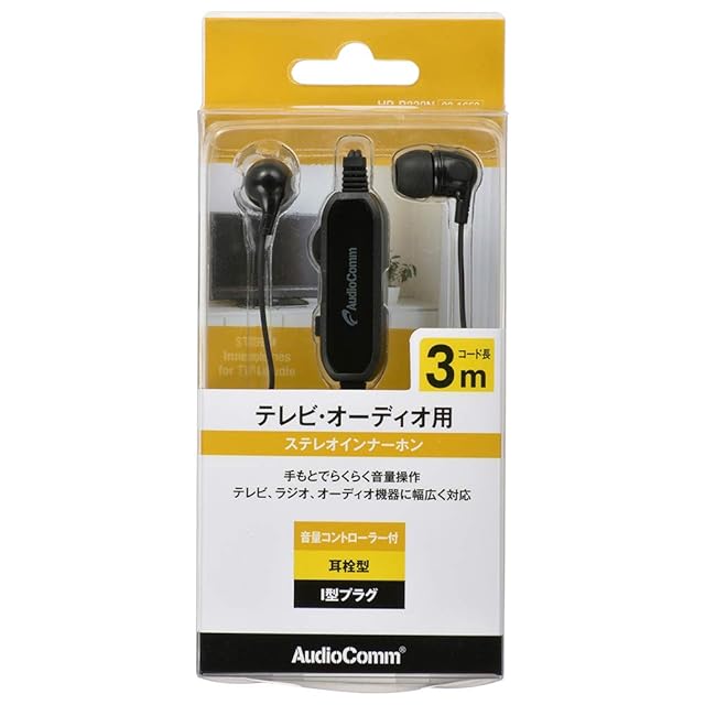 商品名:オーム電機 AudioComm ステレオイヤホン 耳栓型 音量コントローラー付 3m HP-B332N 03-1658 OHM