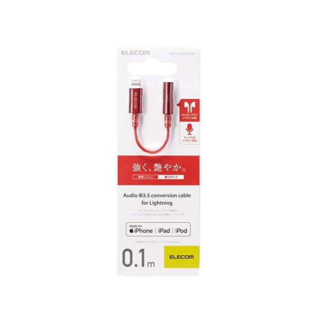 商品名:エレコム オーディオアダプタ 変換ケーブル 【 ライトニング & 3.5mm 】 イヤホン 4極 (通話対応) 高耐久 APPLE認証品 レッド EHP-L35DS01CRD