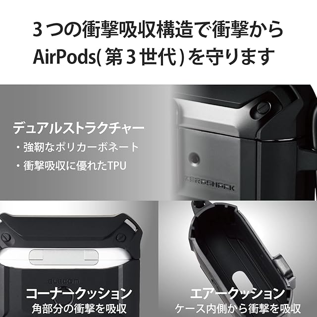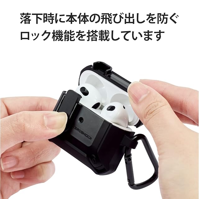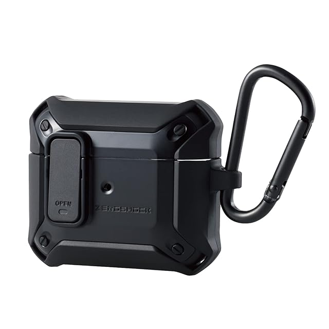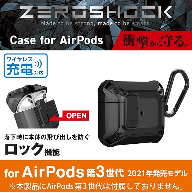 エレコム AirPods 第3世代 (2021年) 用 ケース カバー ZEROSHOCK Lock ロック機能 カラビナ付 落下防止 ワイヤレス充電対応 衝撃吸収 ブラック AVA-AP3ZEROLBK | LIS MART