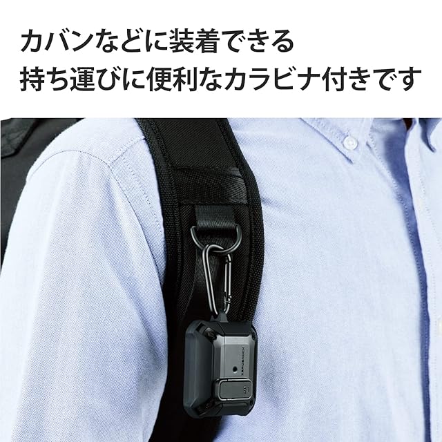商品名:エレコム AirPods 第3世代 (2021年) 用 ケース カバー ZEROSHOCK Lock ロック機能 カラビナ付 落下防止 ワイヤレス充電対応 衝撃吸収 ブラック AVA-AP3ZEROLBK