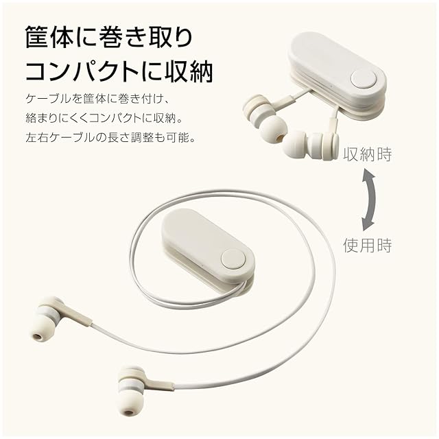 商品名:エレコム ワイヤレスイヤホン Bluetooth bund 巻き取りタイプ クリップ付き ストーンホワイト LBT-HPC17WH