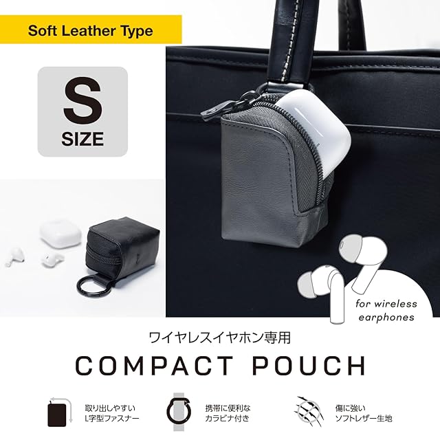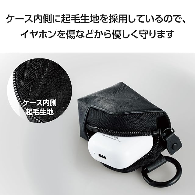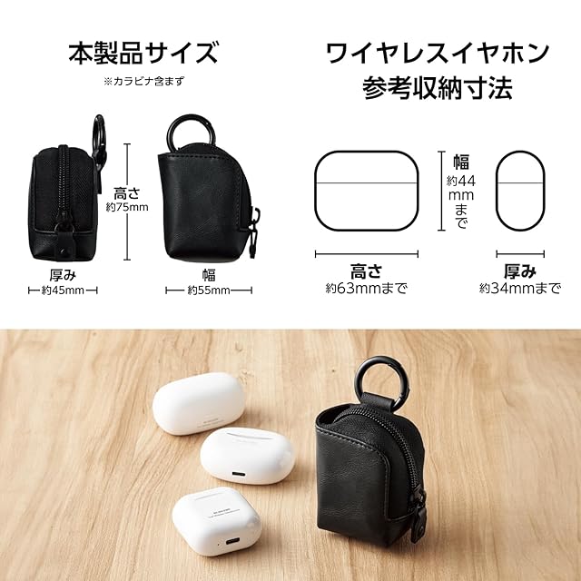 商品名:エレコム イヤホン ワイヤレスイヤホン ケース ポーチ 汎用 Sサイズ ソフトレザー カラビナ付き 内側起毛生地 ブラック TWS-EP23LSBK