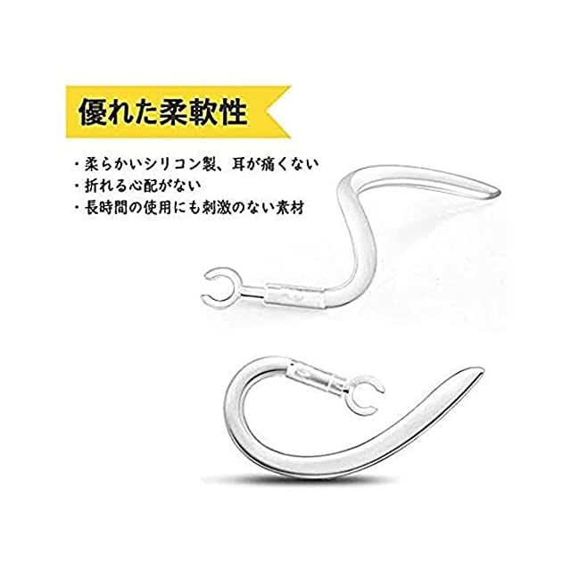 【人間工学】人体工学に基づき設計され、耳の輪郭にフィットします、左右どちらの耳にも思い通りに着用できます|【360°回転式】イヤホンフックが360°回転可能、とお客様の思い通りの場所に付けることが出来ます。|【柔らかいシリコン製】比較的柔らかく、簡単にずり落ちません耳たぶを挟み込んだりしません。強靭性を持ち耐久性に優れており、長期にわたって使用可能。|【対応機種】PLANTRONICS M70、M90、 Explorer 500等のBluetoothイヤホン|【用途】イヤーフックが壊れていたブルートゥースヘッドセットが再び活用できる。