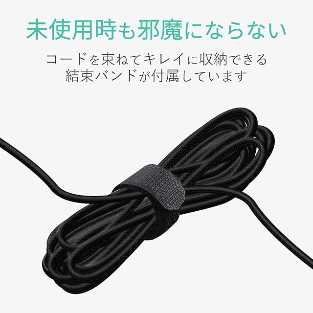 不使用時には、コードを束ねて収納できる結束バンドが付属しています。