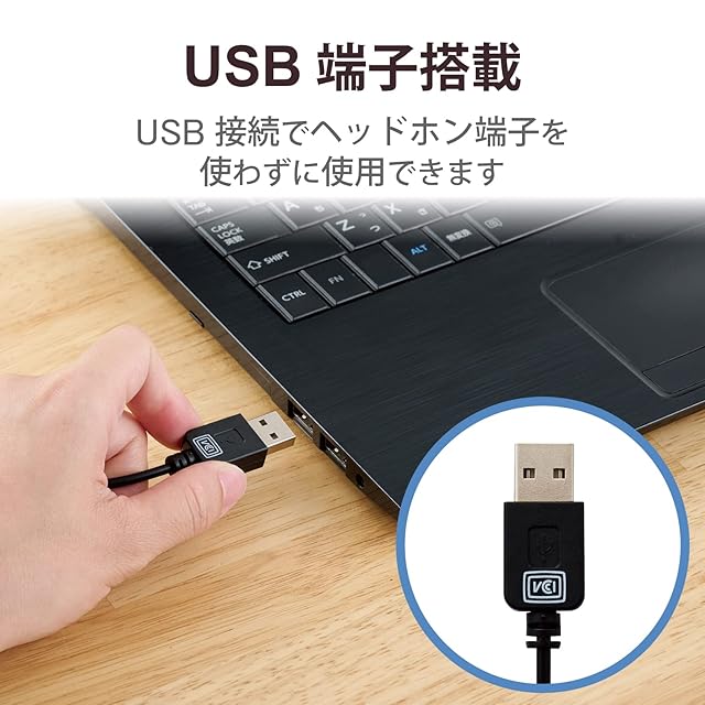 USB接続なのでパソコンのヘッドホン端子を使わずにヘッドセットを使用可能です。