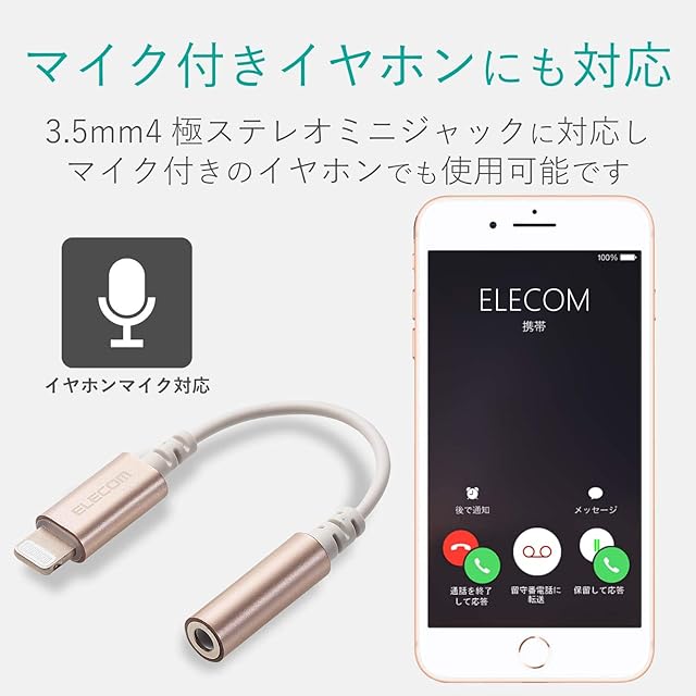 商品名:エレコム 変換ケーブル ライトニング to 4極イヤホン端子 ヘッドフォンアダプタ Apple認証品 ゴールド MPA-XL35DS01GD