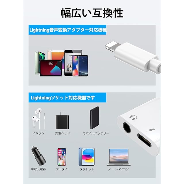 商品名:iPhone イヤホン変換アダプタ 2in1 Lightning to 3.5mm ヘッドフォンジャック - 充電しながら音楽再生、16bit/48KHz Hi-Fi 音質、iPhone 14/13/12/11/XS MAX/XS/X/8/7/8plus(iOS11-18対応)