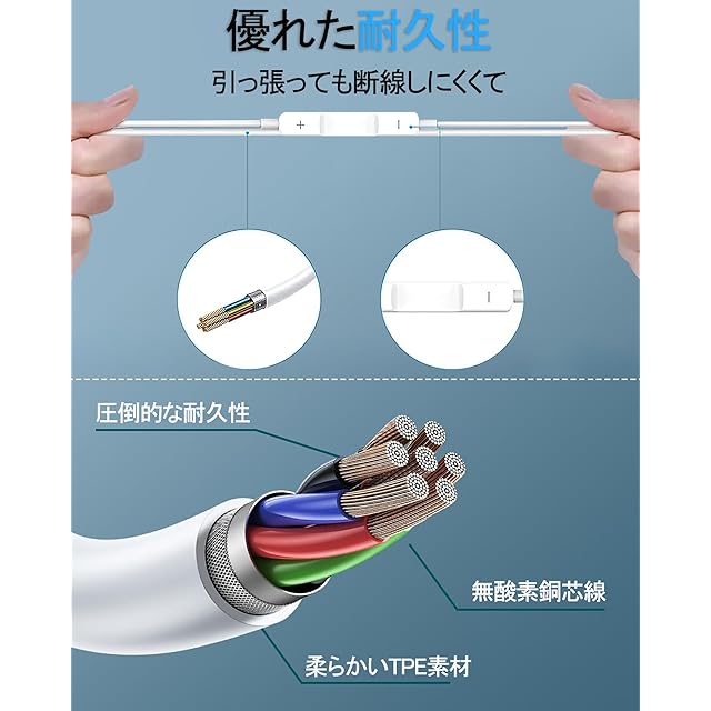 【優れた耐久性】3.5mm 有線 イヤホンの線材の中身の銅線と外部のTPE製被覆は上質な素材を採用して、線材の引張り性をし、断線防止します。厳しい折り曲げテストを受けてあるので、お安心にご使用できます。内部には耐磨耗性に優れた無酸素銅、アルミ箔などを組み込んで、絡まない、丈夫で引っ張りに強い、長くご使用していただくことができます。