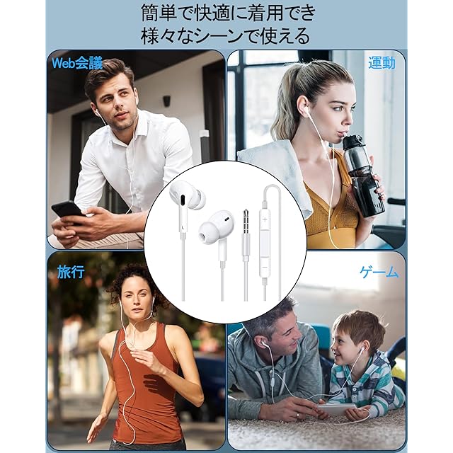 商品名:イヤホン HiFi音質 通話可能 有線イヤホン 3.5mmジャック 音量調整 重低音 遅延なし リモコン付き クリア通話 雑音なし カナル型 イヤフォン ノイズキャンセリング 快適な装着感 ステレオイヤフォン ヘッドホン スマートフォン/PC/MP3/Switch/YouTube/ZOOM/PS4/Android/iPhone 対応