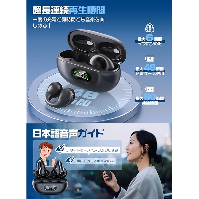 商品名:イヤホン bluetooth ワイヤレスイヤホン 骨伝導イヤホン「2024音質強化·イヤーカフ型の魅力」オープンイヤー イヤホン イヤーカフ イヤホン 耳を塞がないイヤホン 音漏れ抑制 圧迫感ゼロ フィット感 超長時間連続再生 Hi-Fi音質 ENC CVC8.0通話 ノイズキャンセリング ハンズフリー通話 ぶるーとぅーす 高感度ボタン操作 Type-C急速充電 通勤/通学/スポーツ/ゲーム