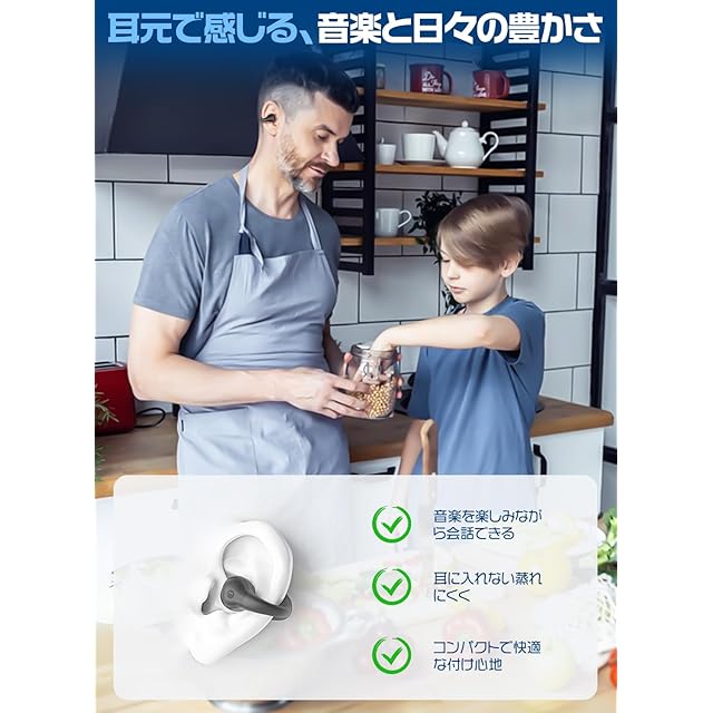 【安定したフィット感&幅広い実用性&高感度な指紋ボタン】イヤホン本体は独⾃のイヤーカフ構造で、様々な⽿の形に対応できるよう滑らかな曲線になっています。本体のアーチ部分がチタン芯材との⼀体成形構造になっているため柔軟性とホールド感がありつつも、振動部の構造も⾒直すことにより⽿への圧迫感が減り、⻑時間の装着でも快適に使⽤が可能になっています。また、イヤーカフ型イヤホンの弱点でもある落としやすさも、この独⾃の構造で払しょくされています。 そのため、ランニングしてても外れる心配はないかもしれないです。ランニング、ドライブ、トレーニングなどに最適です。加えて、本体が高密度の素材をを採用し、より優れた耐久性を実現できるで、数年使用できます。さらに先端な指紋ボタンを採用し、耳への圧迫感をかけずに、指でイヤホンを触れるだけで操作が完了します。