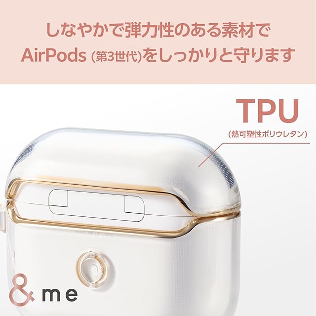 商品名:エレコム AirPods 第3世代 専用 ケース 可愛い &me ゴールドライン ソフト カラビナ付き ワイヤレス充電対応 クリア×ゴールドライン AVA-AP5UCMCR