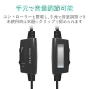 ボリュームコントローラーに、胸ポケットや衣服に取り付けるのに便利なクリップが付いています。